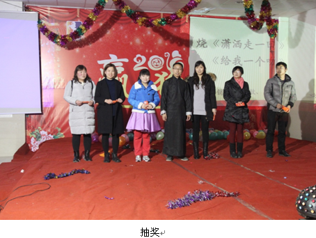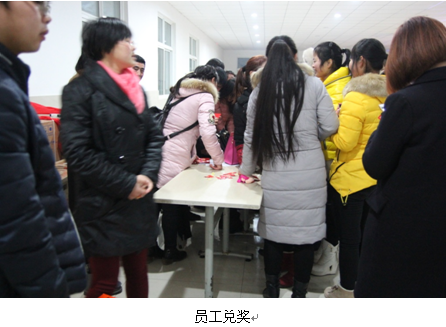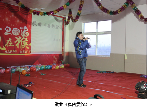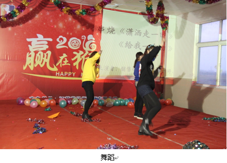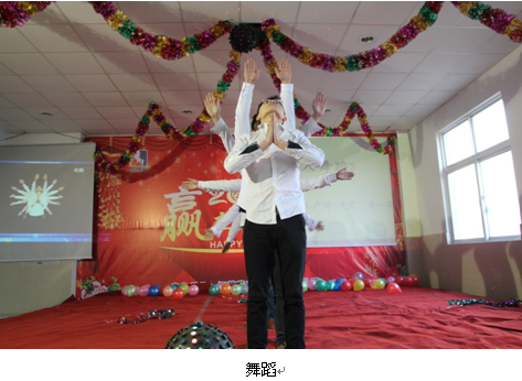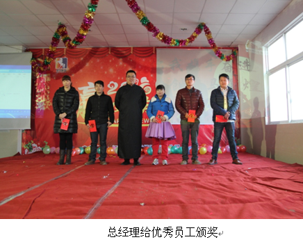 本届年会中,穿插着丰富多彩的节目表演以及激动人心的抽奖活动。车间员工史雷等人的《雷人舞蹈》给大家掀起了一个精彩的开头;销售部冯敏等人的《歌曲串烧》让大家激情澎湃;仓库王小虎的《海阔天空》让大家热血沸腾;中间插入的“爱的宝宝”游戏活动让全场气氛互动的热闹非凡;一波波的抽奖活动将年会现场氛围推向了高潮;最后大家合唱的《相亲相爱的一家人》为本次年会圆满的画上了句号。全体员工为新的一年举杯同庆,共同祝愿荣马的灿烂明天。整个年会在和谐、温馨、激情、欢乐的气氛中圆满落下帷幕。