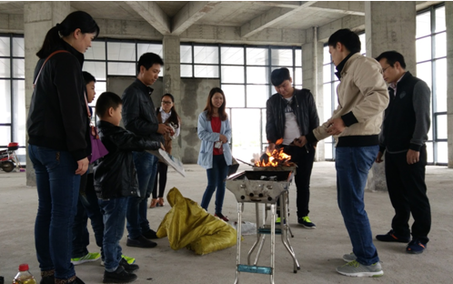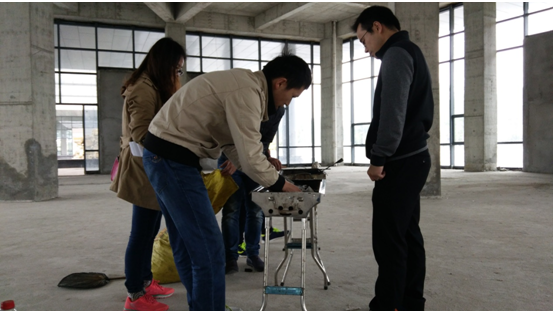 你看!有人洗菜,有人生火,有人串制食物,配合默契,忙得不亦乐乎!最费劲是要数起炉了,几个人围着炉灶有的扇风,有的吹气,有的拿报纸点火,费了很大的劲儿才把炭火点燃。趁着旺盛的炭火,烧烤正式拉开了帷幕。大家展示了不同的烧烤方法和技艺。欢声笑语随着缕缕炊烟萦绕在空中,大家吃着自己亲手烤出的各种食品,聊着自己在工作和生活中遇到的各种趣事,其乐融融!活动一直持续到下午1500,食物几乎被大家“洗劫一空”,整个活动气氛非常热烈!