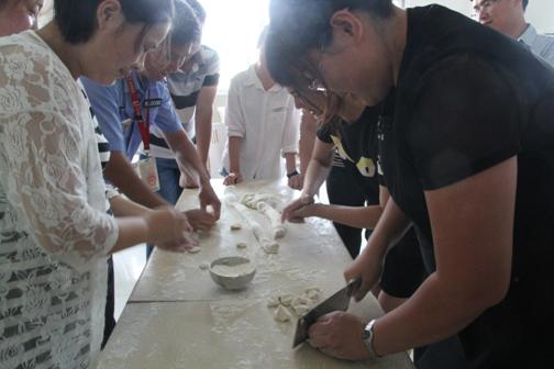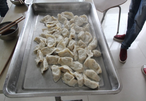 包好的饺子即刻送到食堂工作人员那里,片刻过后热腾腾的饺子呈现在大家面前。大家拿起碗迫不及待的想品尝到自己亲手做的饺子。虽然饺子有大有小形状各异,还有的因为密封不严下水后就煮开了皮,但是并不影响大家吃饺子的快乐。大家也表示能吃到自己亲手包的饺子很幸福。