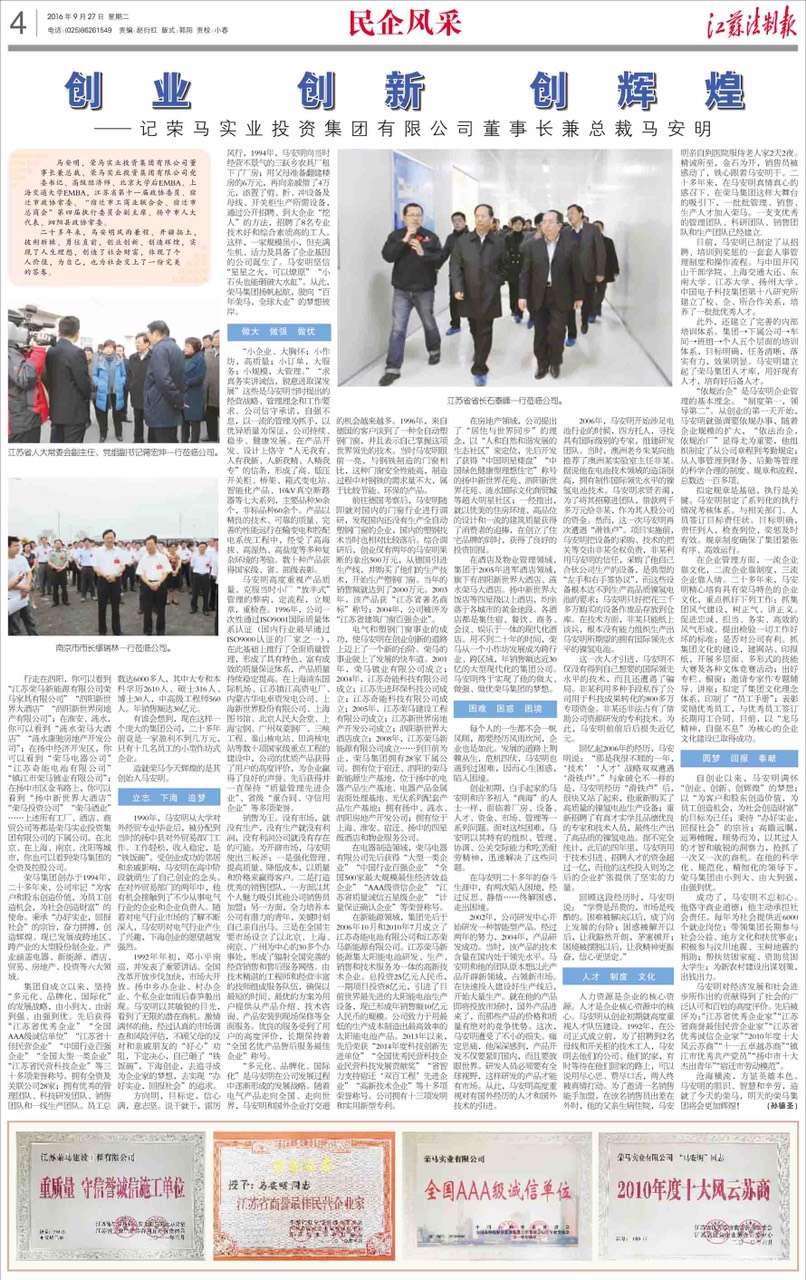 创新 创业 创辉煌--记荣马实业投资集团有限公司董事长兼总裁马安明