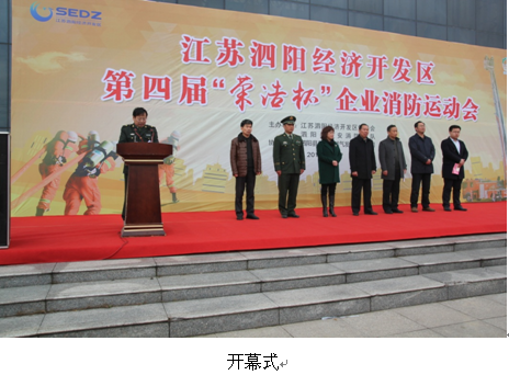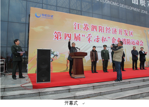 20161129号下午,江苏泗阳经济开发区第四届“荣浩杯”消防技能比赛在开发区管委会办公大楼门前广场举行。随着副县长李庆峰的一声枪响,本次比赛正式拉开帷幕。