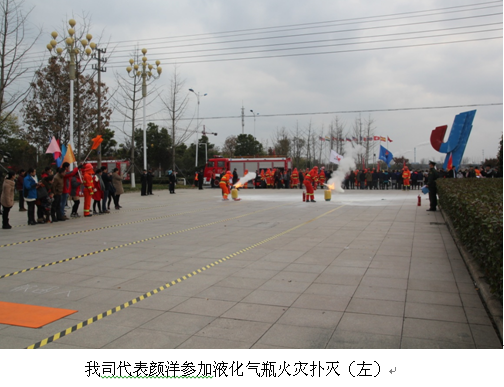 整场比赛分为消火栓带出水模拟灭火、30米液化气钢瓶火灾扑救、30米油盆火灾扑救三个部分。比赛时,我公司队员勇往直前,比赛前认真做好准备工作,比赛中,奋勇向前直扑火点,用最快的速度把火扑灭。我们公司队员之间的默契配合,比赛中的飞快的速度,灭火时敏捷的身手,这也使我们这些业余消防员比起正规消防员也毫不逊色。