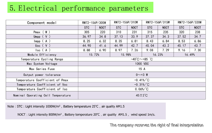 荣马RM72-156P(305-320)多晶太阳能组件