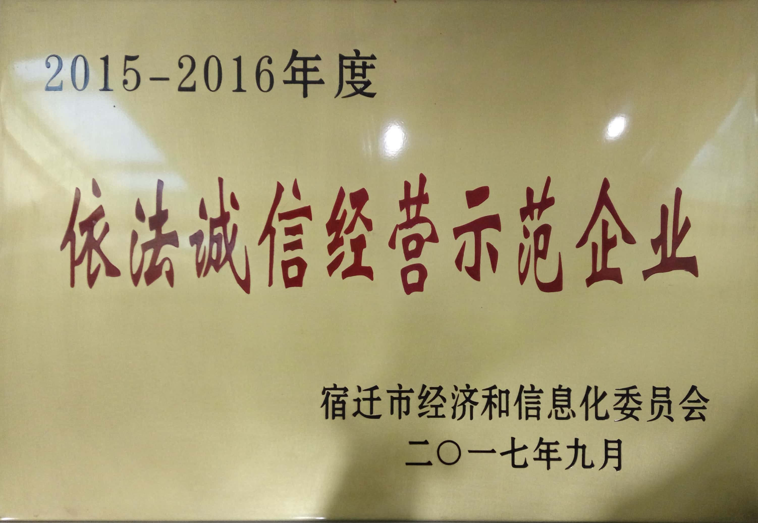 热烈祝贺我司荣获“宿迁市2015-2016依法诚信经营示范企业”荣誉称号