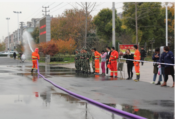 此次比赛共计30多家企业,近百名业余消防员,我公司由人力行政部经理路芳敏领队,选拔出由王振、颜洋作为公司代表参赛。整场比赛分为消火栓带出水打靶操、30米液化气钢瓶火灾扑救、30米油盆火灾扑救三个部分。比赛时,我公司队员勇往直前,比赛前认真做好准备工作,比赛中,奋勇向前直扑火点,用最快的速度把火扑灭。我们公司队员之间的默契配合,比赛中的飞快的速度,灭火时敏捷的身手,这也使我们这些业余消防员比起正规消防员也毫不逊色。