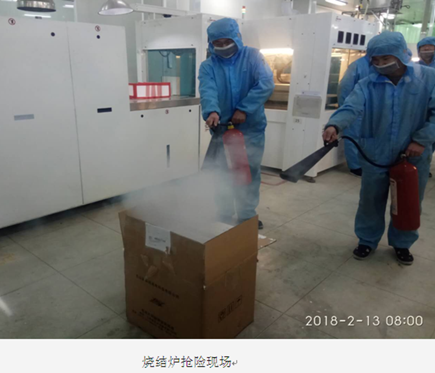 为实提高员工的安全意识和应急自救能力,公司于2018213日上午800进行了综合演练。本次演练主要模拟烧结炉异常引起火灾并扩散到有几排的事故现场,在模拟事故中让各部门各司其职,了解异常状态下每个人要如何逃生,如何抢险,如何汇报等等。