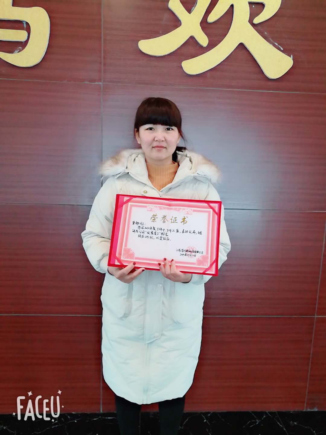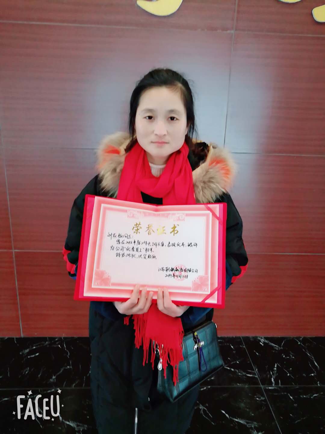 经过紧张的投票评选,最终优秀员工确定为质量部董静、技术部孔德明、生产部刘燕梅、物流部张敏和四位员工。这四位员工能够遵守公司的各项管理制度,在工作中表现优异、起到表率作用,为公司发展做出了贡献,特此被评为2018年第四季度“优秀员工”,人力行政部经理路芳敏为优秀员工颁发“优秀员工”荣誉证书及奖金。公司的发展离不开员工的添砖加瓦,同样员工的发展也得益于公司这个平台,未来我们会携手奋进,实现共同发展。(注:张敏和同志因工作原因没能参加合影仪式。)