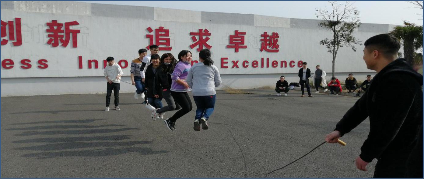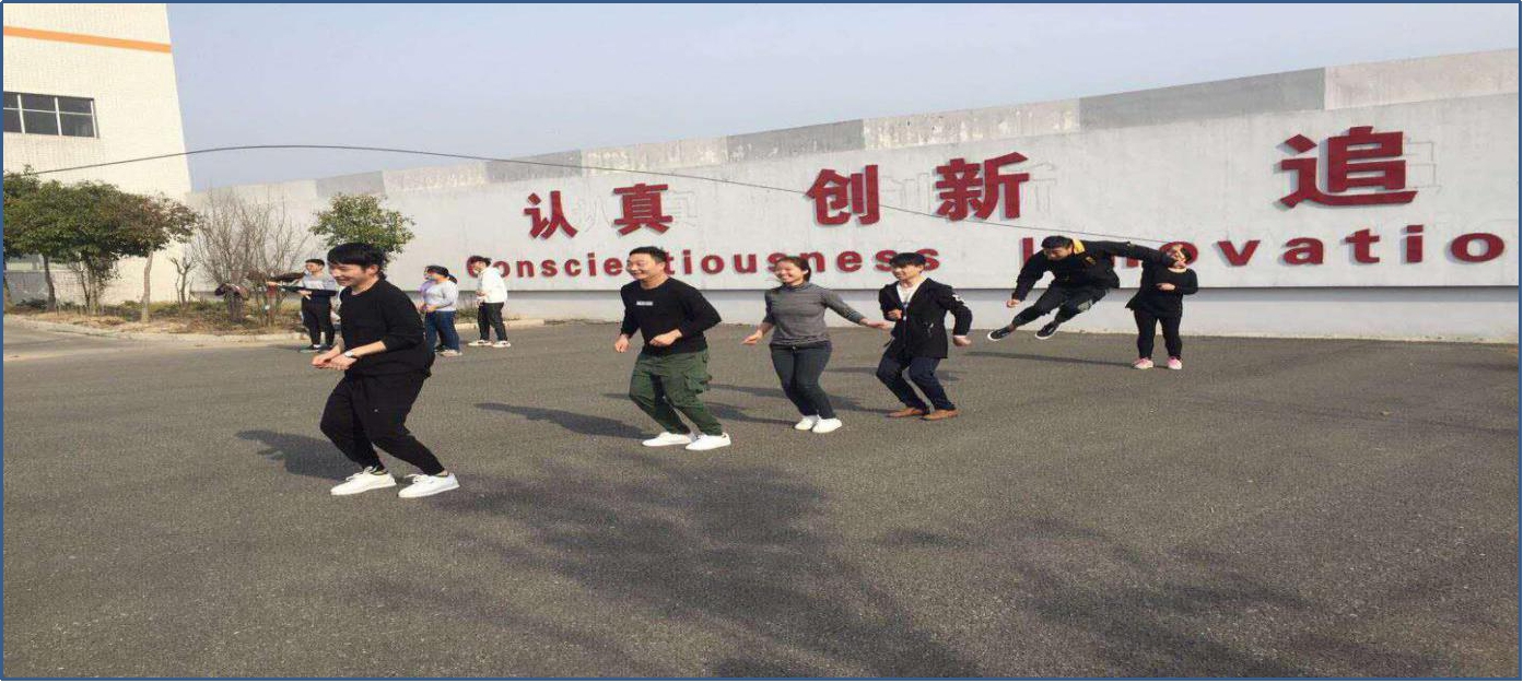 为丰富职工文化生活,开展多元文体活动,增强员工体质,凝人气,聚力量,2019326早上8公司在厂区举行以 阳光体育,魅力员工, 绳在手中跳出风采”为主题的新一轮跳绳比赛。参加本次活动共计32人,分别为生产部16人,质量部8人,技术部2人,设备厂务部5人,仓库1人,计4组,每组8人。