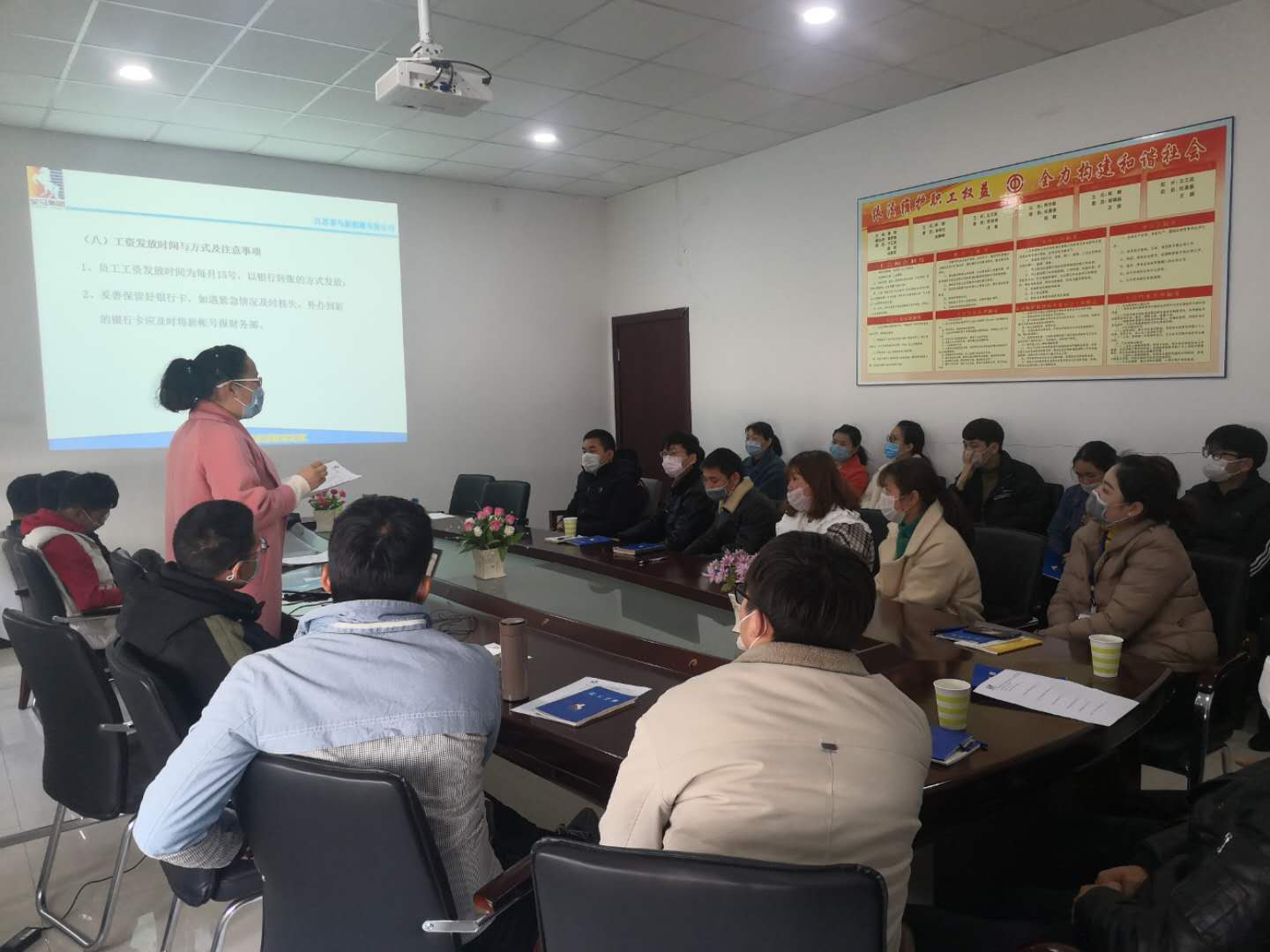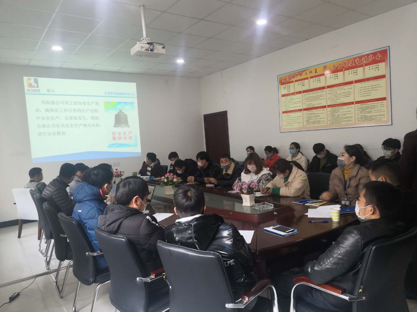 上午8:00在会议室举行了室内培训,由几位讲师依次讲解公司的规章制度、安全生产等内容。