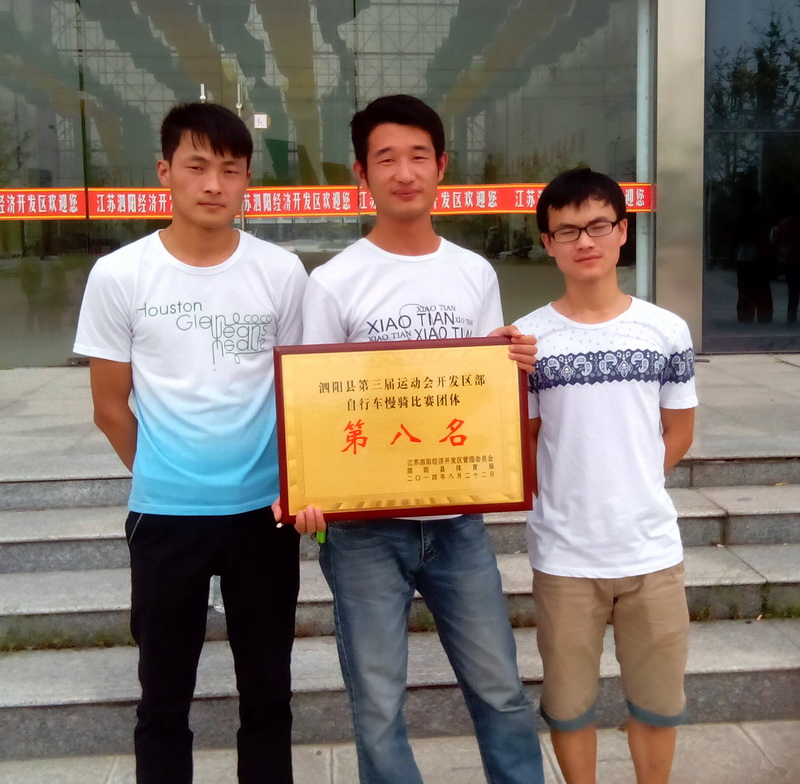 823日上午9点,泗阳县经济开发区管委会举办自行车慢骑比赛。园区共有10余家企业的上百名员工参加此次比赛,地点在管委会广场。我公司由王磊(人力行政部)、郑翔宇(仓库)、黄宗振(技术部)等多名员工代表参加此次比赛。
