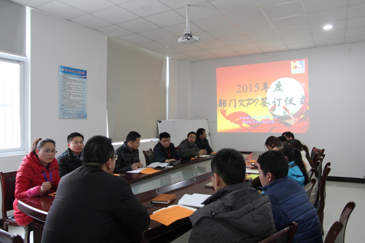 2015114日下午1358分,公司总经理朱姚培带领各部门经理和主管,集聚一堂,完成了2015年各部门KPI指标的签订。