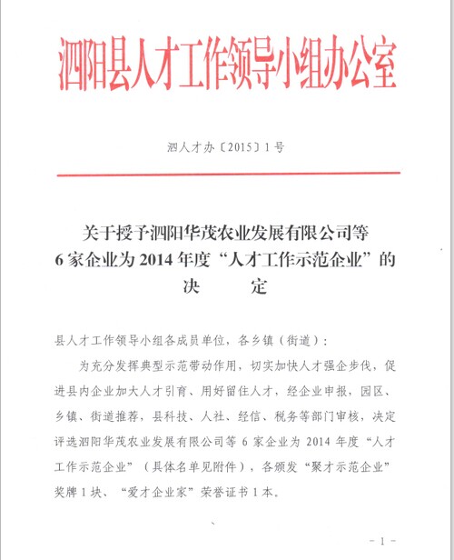 取得如此殊荣,与我司自2010年成立以来,一直注重人才的引进, 和重视“人才技术的重要性,没有人才与技术,企业就没有核心竞争力”的理念息息相关。同时也感谢县委、县政府和组织部领导对我司引进人才的关心与重视,并多次到我司对他们进行指导和慰问,让他们倍受感动和温暖,使他们更加坚定信心、扎根泗阳、奋力拼搏。