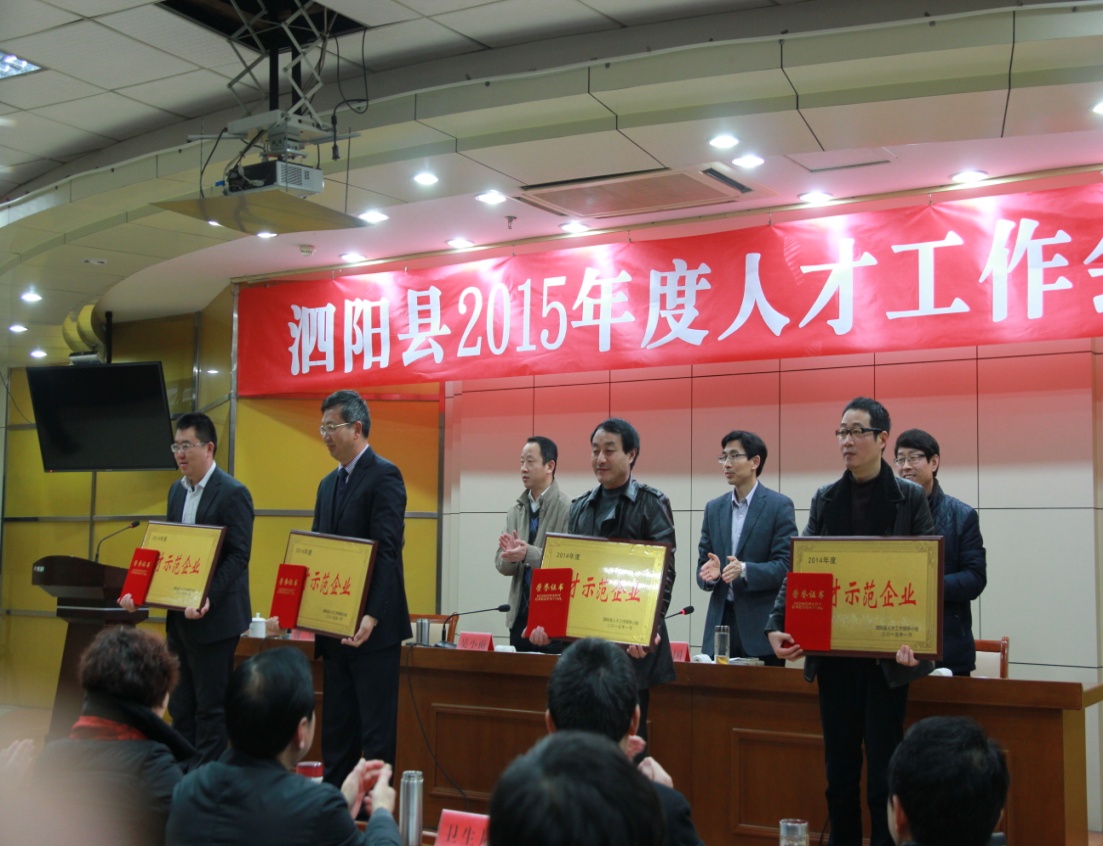 2015126日上午九点,我司总经理朱姚培先生以及何晨旭博士参加泗阳县人才办组织的人才会议,此次人才会议授予我司“聚才示范企业”的荣誉称号,朱姚培先生荣获“爱才企业家”荣誉称号,何晨旭博士代表公司上台领取英才计划奖励。