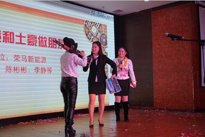 年会舞台上诸多好声音激情献唱,使得现场齐声合唱,热闹非凡,叫好声不绝于耳,全体员工一起沉溺于一场音乐的盛典。荣马新能源的小品《我和土豪做朋友》也以精彩的表演获得了“最佳创意奖”。