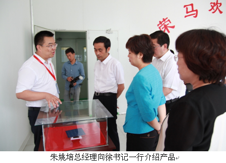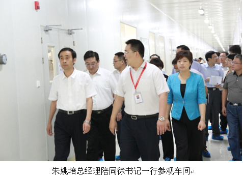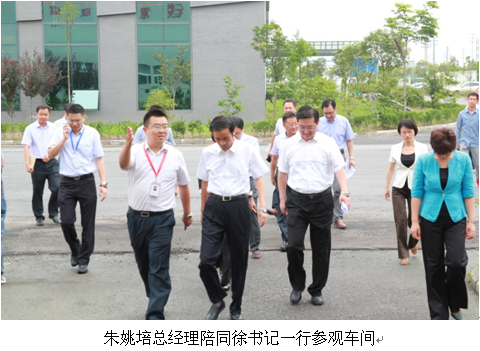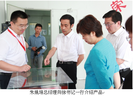 在公司负责人的陪同下,徐书记等一行参观了生产车间。朱姚培总经理向徐书记一行详细汇报了企业经营、产品开发、行业趋势、未来市场定位等情况,并针对公司启动的二期工程工作进行了汇报。
