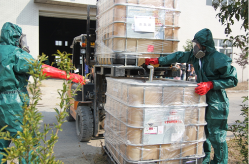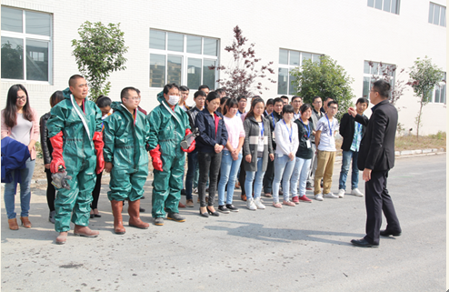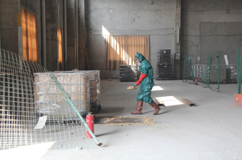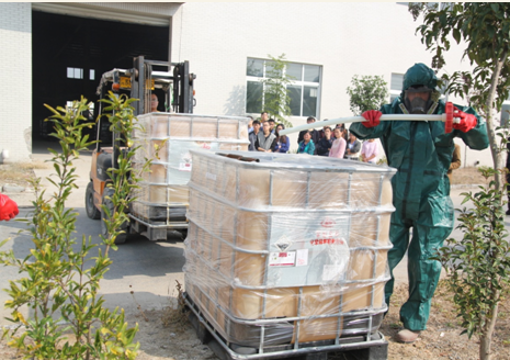 20151014日上午10点,厂务组王振组织了一次危化品泄露演练。这次演练主要针对仓库员工、危化品管理员和危化品操作员,此次演练共有20余人参加,生产总监孔总、质量经理蒋健现场指导和观摩。